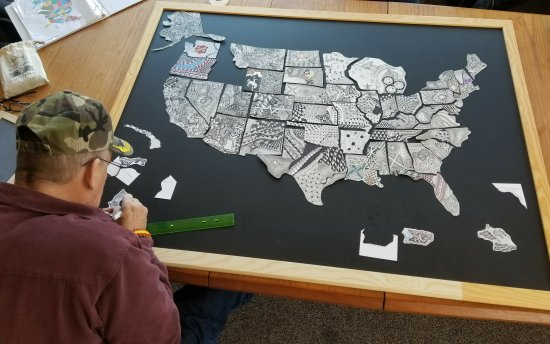 We are plotting an American veteran adventure! We are well on our way tangling every state for the group entry into the 2018 Veterans Creative Arts Festival.