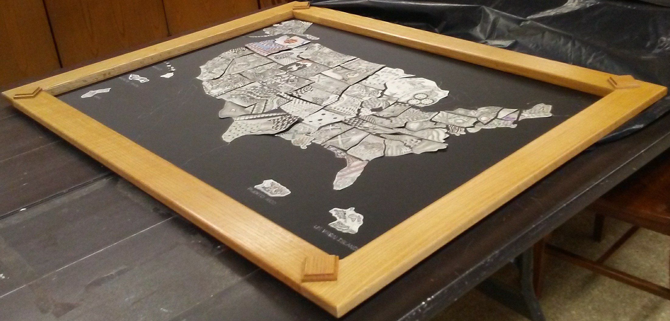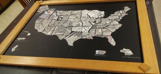 11/08/2017 the map is nearing completion. We are waiting for a few more vets to turn in their states. Mounting the states onto the chalkboard will be the last step of our journey.