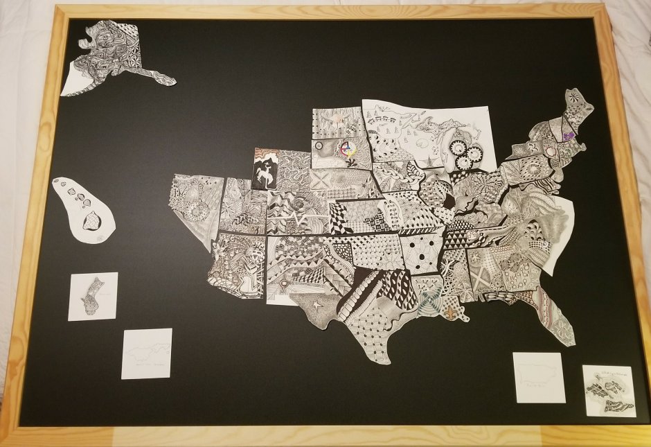 We are plotting an American veteran adventure! We are well on our way tangling every state for the group entry into the 2018 Veterans Creative Arts Festival.