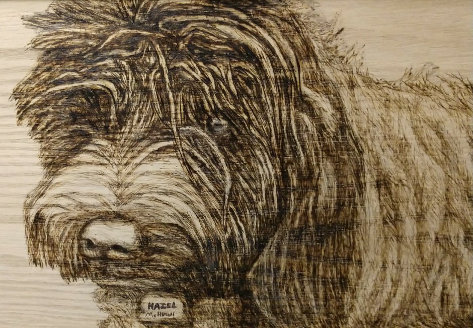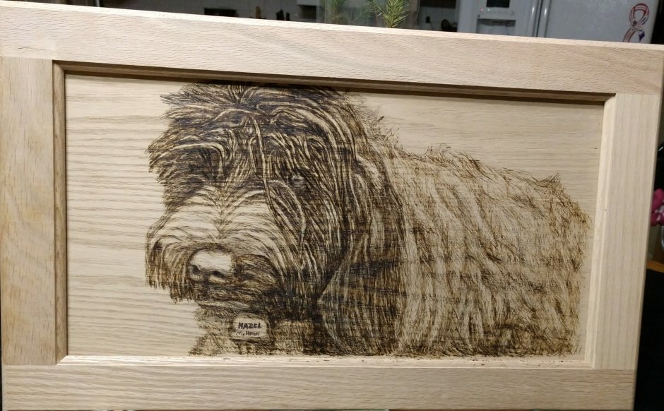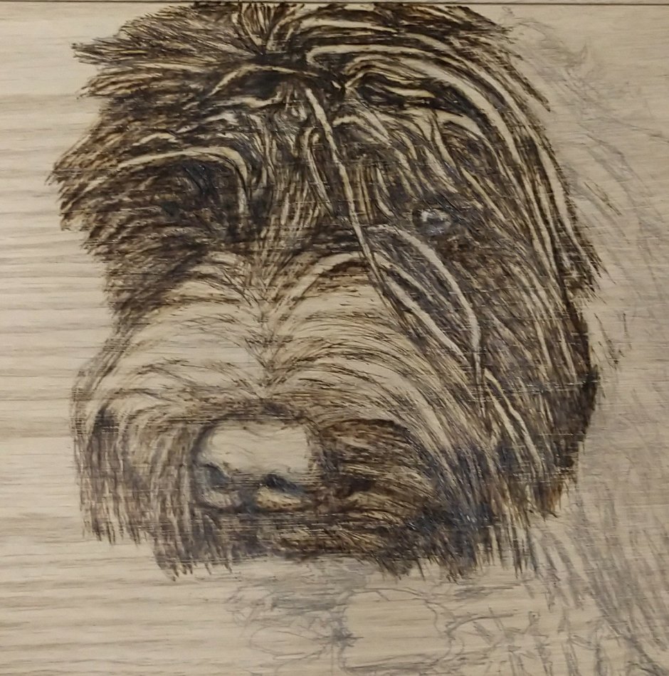 I tried another wood burning piece. It’s of my nephew’s dog Hazel, she passed away last year. I made it for his highschool graduation gift.