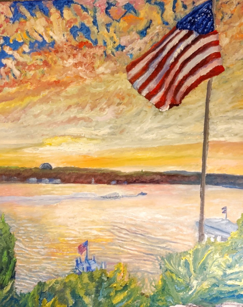 Summer 2019 Posted on October 6, 2019 5:19 pm by markduranart KEEFE Commission I was asked to paint a lake scene with the flag. Here’s the result. Share this: Click to share on X (Opens in new window) X Click to share on Facebook (Opens in new window) Facebook Like Loading... Related